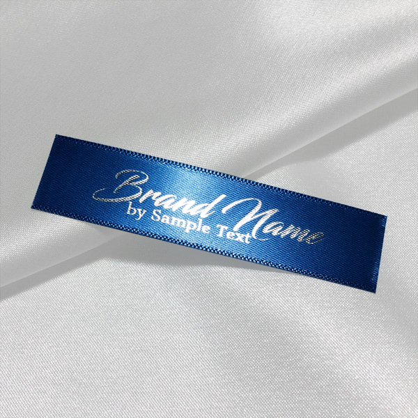 Gepersonaliseerd label TL-M73 gedrukt op satijnen stof. Geschikt voor kleding, kledingaccessoires en andere textielproducten.