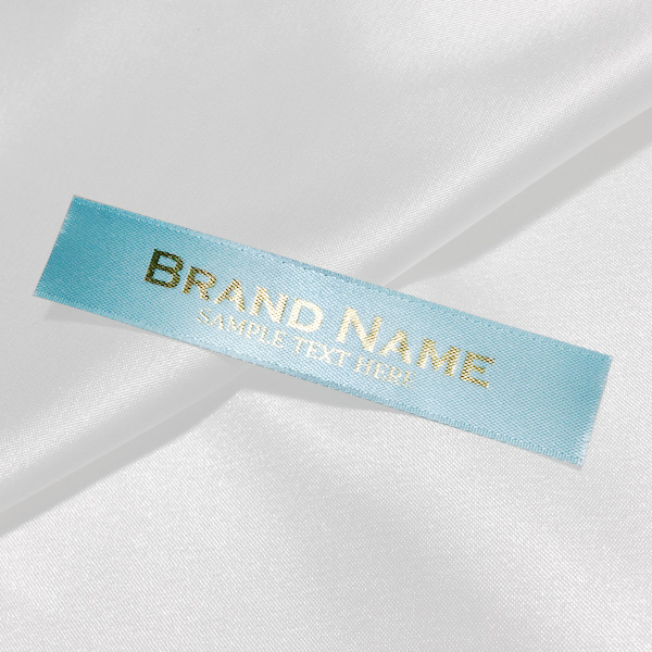 Gepersonaliseerd label TL-M116 gedrukt op satijnen stof. Geschikt voor kleding, kledingaccessoires en andere textielproducten.