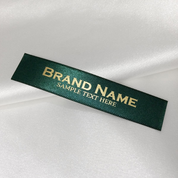 Gepersonaliseerd label TL-M13 gedrukt op satijnen stof. Geschikt voor kleding, kledingaccessoires en andere textielproducten.