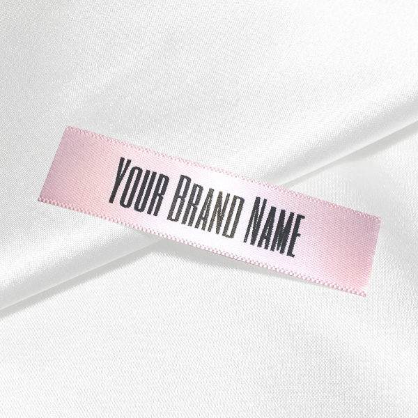 Gepersonaliseerd label TL-M57 gedrukt op satijnen stof. Geschikt voor kleding, kledingaccessoires en andere textielproducten.