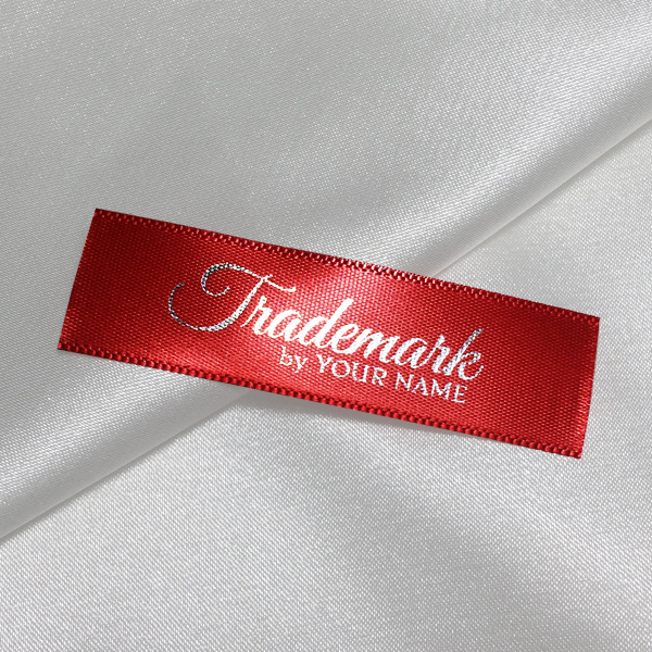 Gepersonaliseerd label TL-M139 gedrukt op satijnen stof. Geschikt voor kleding, kledingaccessoires en andere textielproducten.