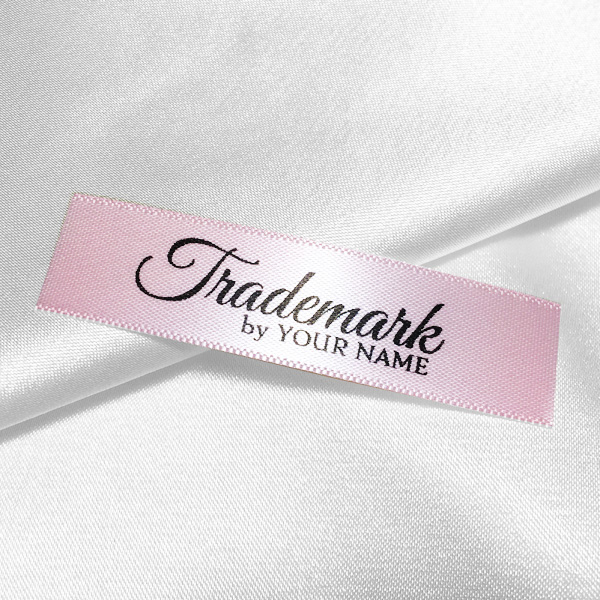 Gepersonaliseerd label TL-M55 gedrukt op satijnen stof. Geschikt voor kleding, kledingaccessoires en andere textielproducten.