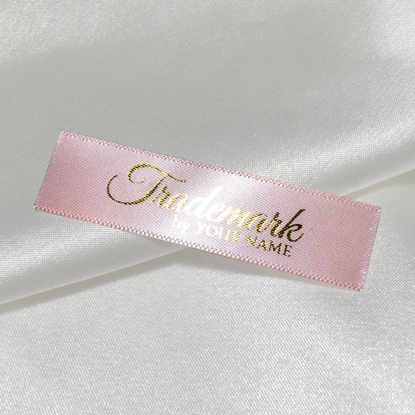 Gepersonaliseerd label TL-M94 gedrukt op satijnen stof. Geschikt voor kleding, kledingaccessoires en andere textielproducten.