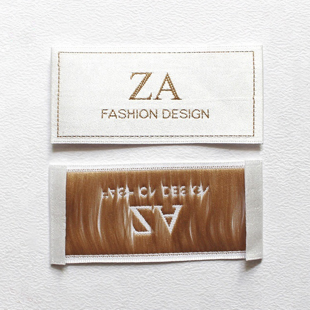 Gepersonaliseerde geweven label WL-M90 Digitaal geborduurd op een stof die geschikt is voor kleding, accessoires en andere textielproducten.