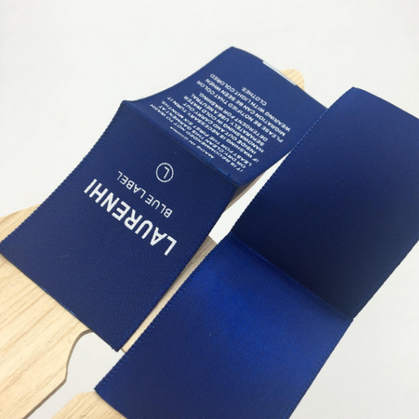 Gepersonaliseerde geweven label WL-M40 Digitaal geborduurd op een stof die geschikt is voor kleding, accessoires en andere textielproducten.