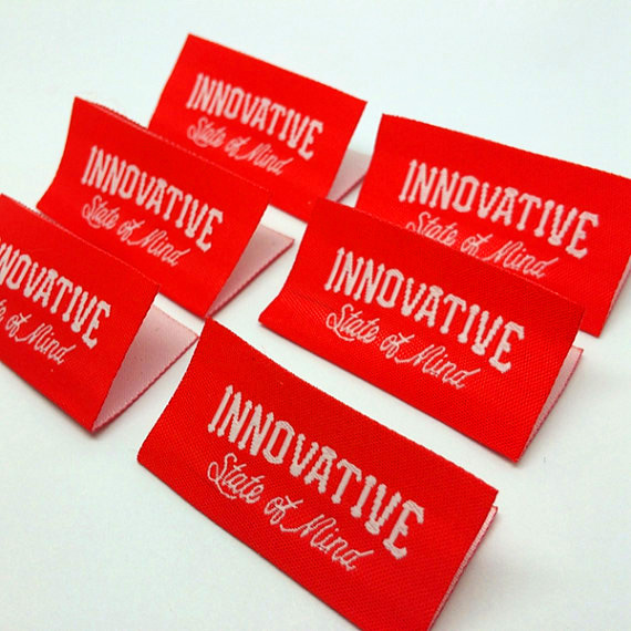 Textiel label Sheer Style, gepersonaliseerd met een digitaal geborduurde tekst. Dit product is in het midden gevouwen om geweven te kunnen worden door een kledingstuk of een ander textielproduct. Dit type geweven label is gemaakt van hoogwaardige materialen. Er wordt gebruik gemaakt van de meest geavanceerde technologieën uit het digitale borduurveld.