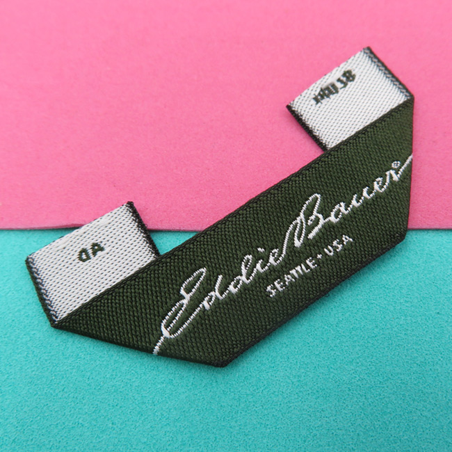 Gepersonaliseerde geweven label WL-M33 Digitaal geborduurd op een stof die geschikt is voor kleding, accessoires en andere textielproducten.