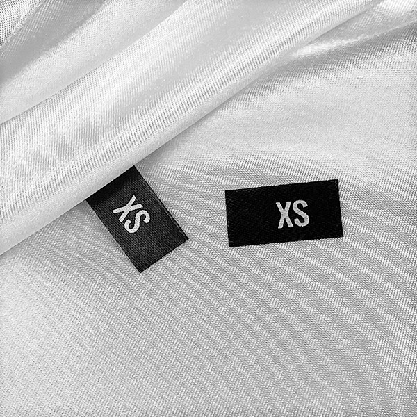 Etiketten met artikelnummer of maat op bestelling gemaakt van textielmateriaal, te naaien op kleding. Dit type textiel label wordt gemaakt met behulp van de meest geavanceerde technologieën op het gebied van digitaal printen. De labels worden gedrukt op een speciaal satijn door middel van thermische overdracht. Dit resulteert in een indrukwekkende printkwaliteit en hoge wasbestendigheid.