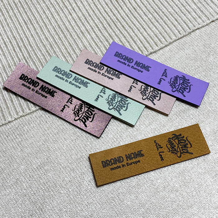 Gepersonaliseerd label EP-M167 van kunstleer voor kleding, tassen, schoenen en diverse kledingaccessoires.