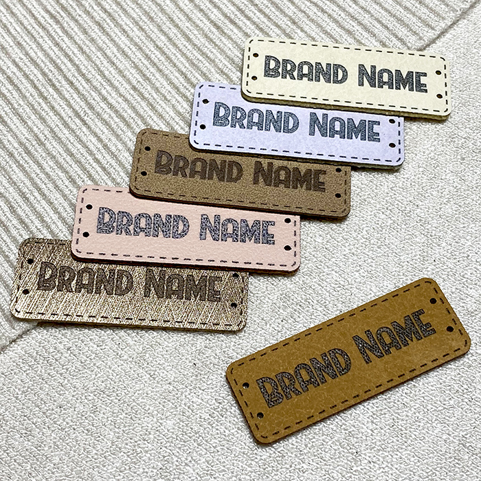 Gepersonaliseerd label EP-M104 van kunstleer voor kleding, tassen, schoenen en diverse kledingaccessoires.