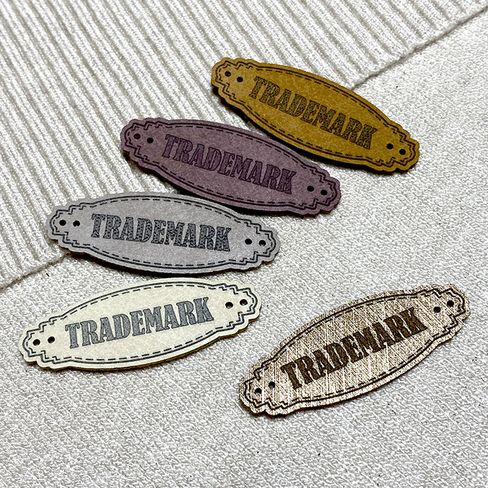Gepersonaliseerd label EP-M102 van kunstleer voor kleding, tassen, schoenen en diverse kledingaccessoires.