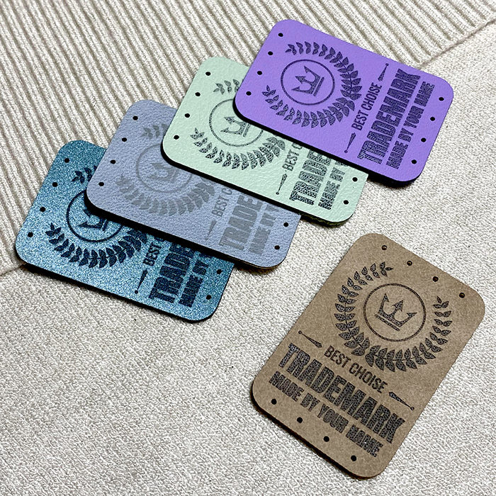 Gepersonaliseerd label EP-M106 van kunstleer voor kleding, tassen, schoenen en diverse kledingaccessoires.