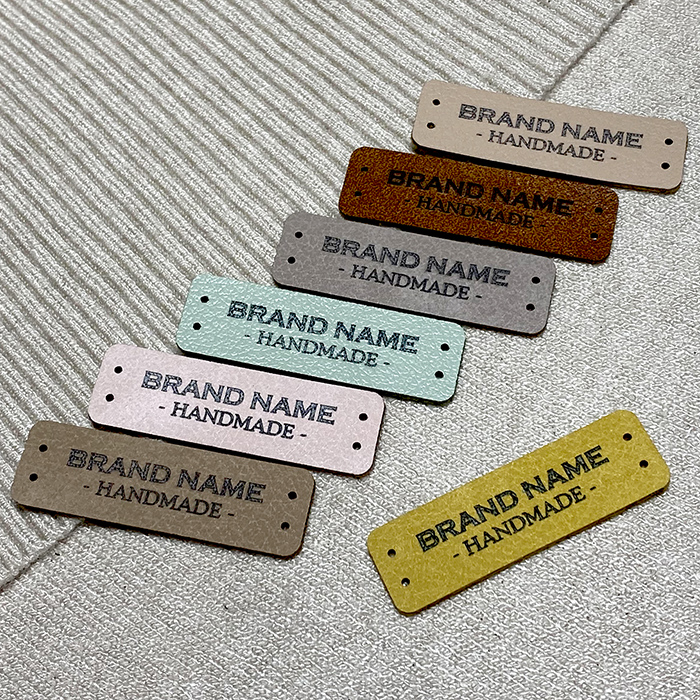 Gepersonaliseerd label EP-M108 van kunstleer voor kleding, tassen, schoenen en diverse kledingaccessoires.
