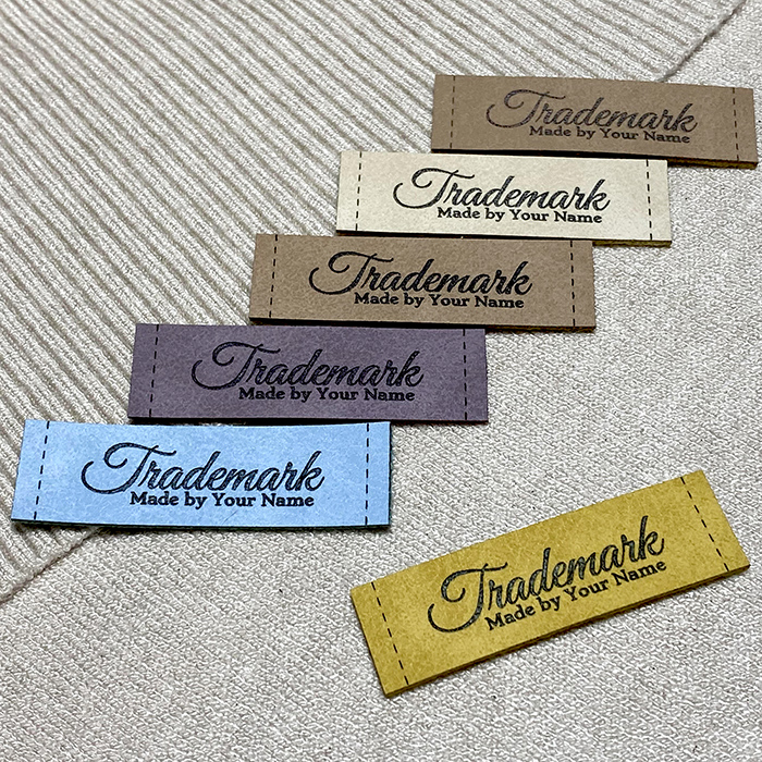 Gepersonaliseerd label EP-M109 van kunstleer voor kleding, tassen, schoenen en diverse kledingaccessoires.