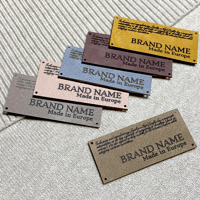 Gepersonaliseerd label EP-M110 van kunstleer voor kleding, tassen, schoenen en diverse kledingaccessoires.
