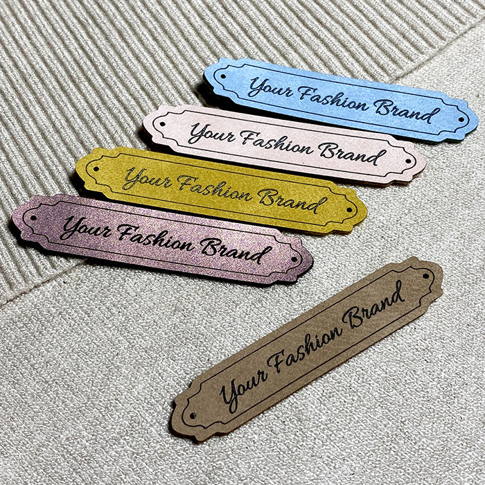 Gepersonaliseerd label EP-M116 van kunstleer voor kleding, tassen, schoenen en diverse kledingaccessoires.