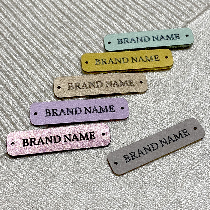 Gepersonaliseerd label EP-M126 van kunstleer voor kleding, tassen, schoenen en diverse kledingaccessoires.