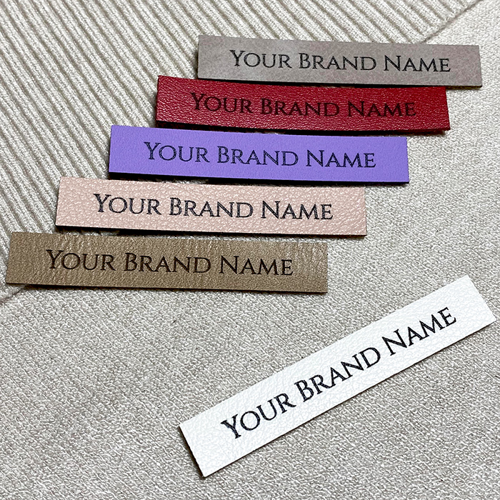 Gepersonaliseerd label EP-M127 van kunstleer voor kleding, tassen, schoenen en diverse kledingaccessoires.