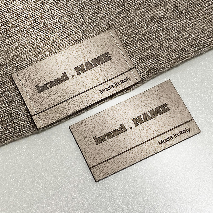 Gepersonaliseerd label EP-M22 van natuurlijk leer voor kleding, tassen, schoenen en diverse kledingaccessoires.