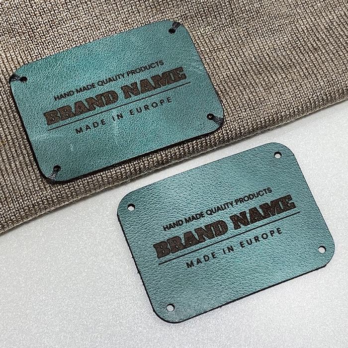 Gepersonaliseerd label EP-M23 van natuurlijk leer voor kleding, tassen, schoenen en diverse kledingaccessoires.