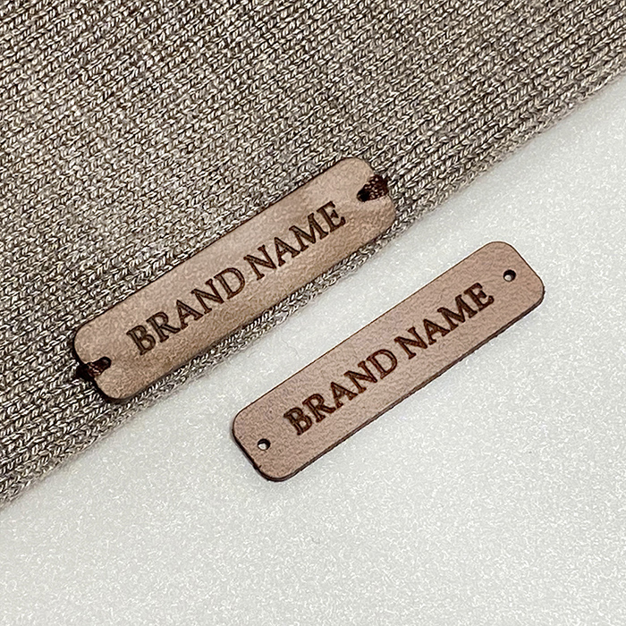 Gepersonaliseerd label EP-M26 van natuurlijk leer voor kleding, tassen, schoenen en diverse kledingaccessoires.