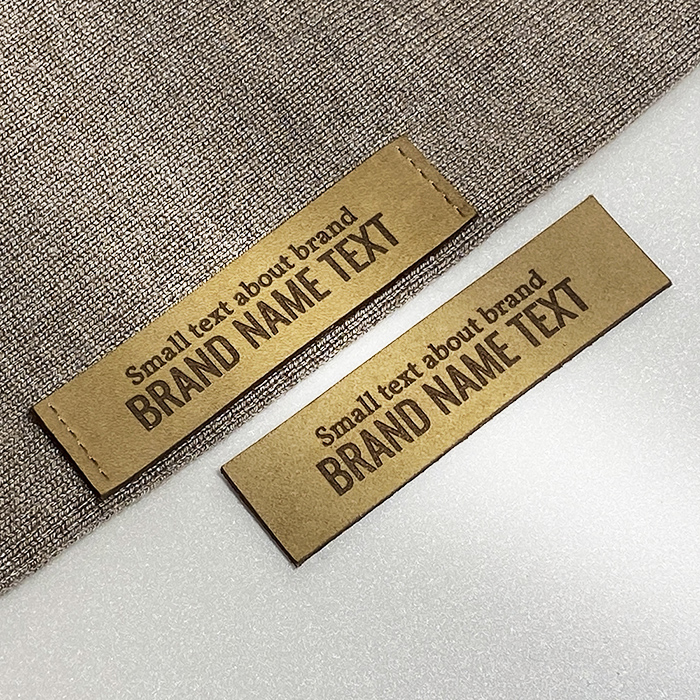 Gepersonaliseerd label EP-M35 van natuurlijk leer voor kleding, tassen, schoenen en diverse kledingaccessoires.
