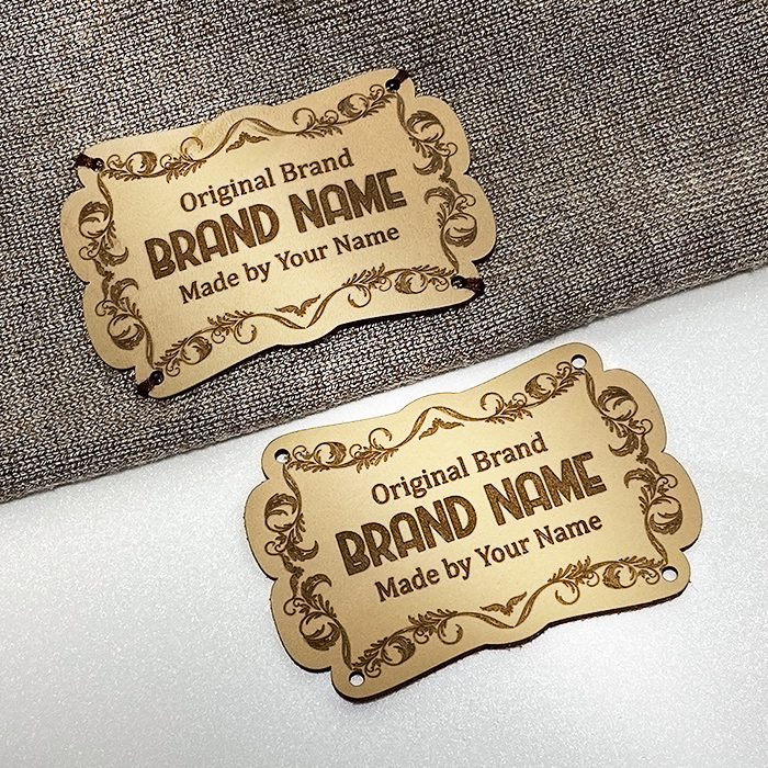 Label van natuurlijk leer model EP-M42 gepersonaliseerd met logo of merknaam, geschikt voor kleding, schoenen, tassen, jassen, broeken, jurken en vele andere artikelen. Dit model lederen label is gemaakt van hoogwaardig natuurlijk leder, met behulp van de nieuwste generatie apparatuur en professionele lasergraveer- of reliëfmethoden.