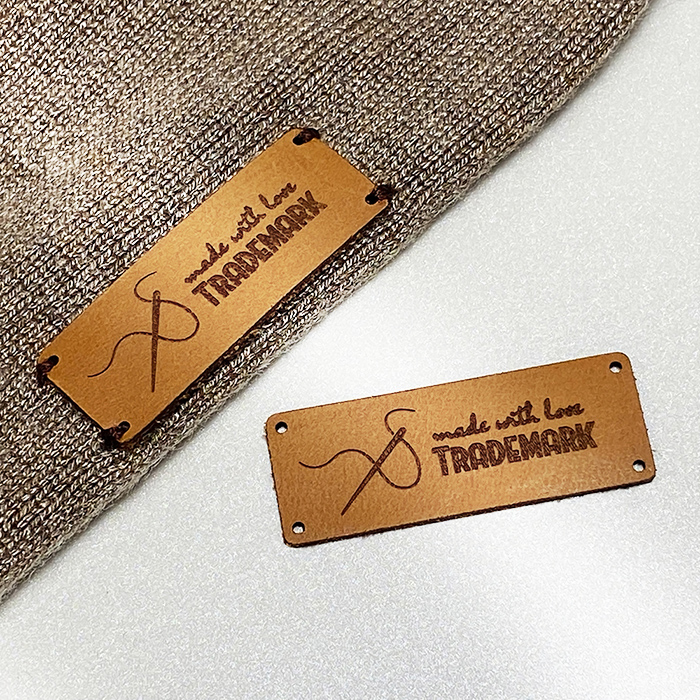 Gepersonaliseerd label EP-M63 van natuurlijk leer voor kleding, tassen, schoenen en diverse kledingaccessoires.