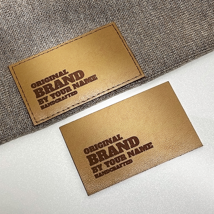 Gepersonaliseerd label EP-M68 van natuurlijk leer voor kleding, tassen, schoenen en diverse kledingaccessoires.