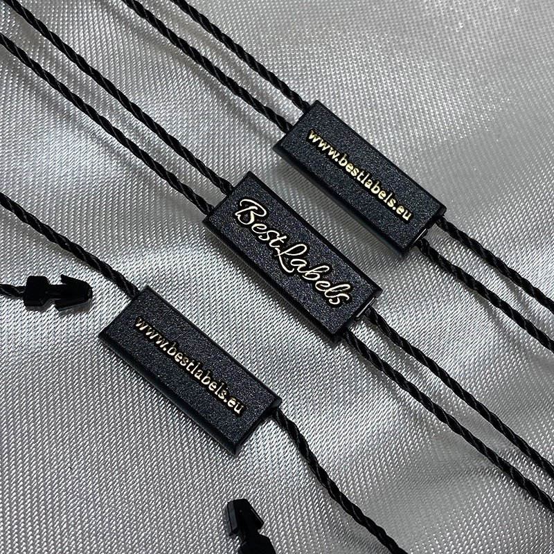 Plastic zegel ST-M133 met een eenvoudige rechthoekige vorm, gepersonaliseerd met een tekst, merknaam, website en logo / embleem. Geschikt voor elk type textielproduct zoals kleding, schoenen en tassen. Dit type zegel is gemaakt van hoogwaardige materialen en met behulp van de meest geavanceerde technologieën in het veld.