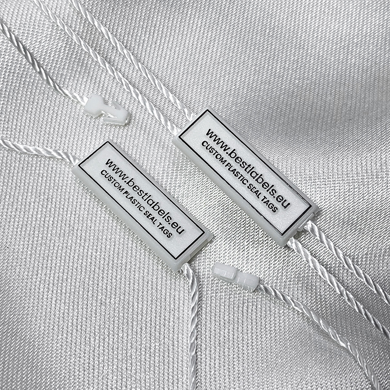 Personaliseer plastic zegel tag ST-M147 voor mode producten waaronder kleding, schoenen, tassen, sieraden en accessoires.