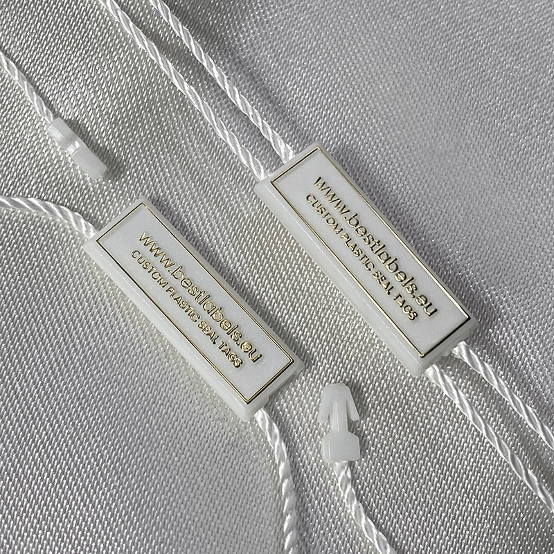 Personaliseer plastic zegel tag ST-M148 voor mode producten waaronder kleding, schoenen, tassen, sieraden en accessoires.