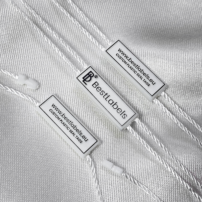 Personaliseer plastic zegel tag ST-M154 voor mode producten waaronder kleding, schoenen, tassen, sieraden en accessoires.