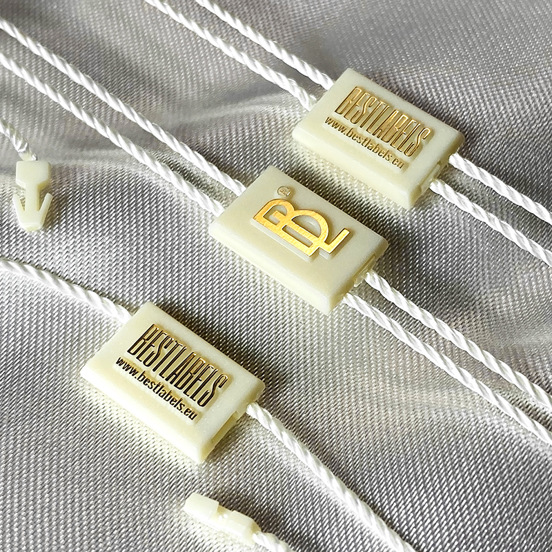 Personaliseer plastic zegel tag ST-M173 voor mode producten waaronder kleding, schoenen, tassen, sieraden en accessoires.