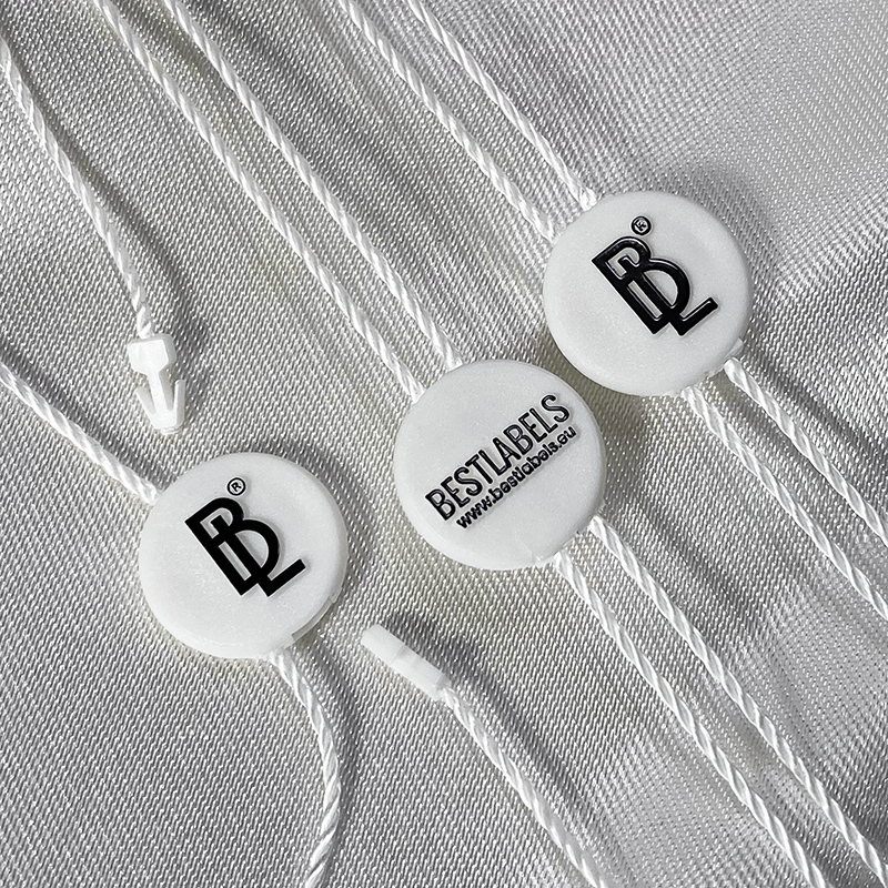 Plastic zegel ST-M53 met een elegant design en een ronde vorm. Kan worden gepersonaliseerd aan twee kanten met bijvoorbeeld een merknaam of een logo. Ideaal voor producten zoals kleding, tassen en schoenen. Dit type zegel is gemaakt van hoogwaardige materialen en met behulp van de meest geavanceerde technologieën in het veld.