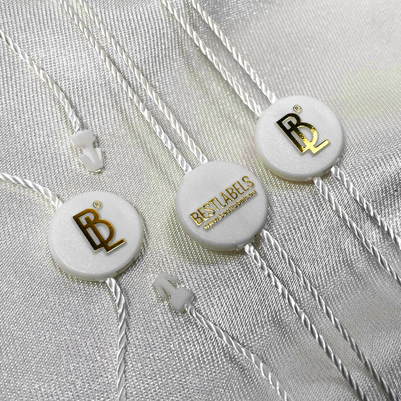 Personaliseer plastic zegel tag ST-M54 voor mode producten waaronder kleding, schoenen, tassen, sieraden en accessoires.