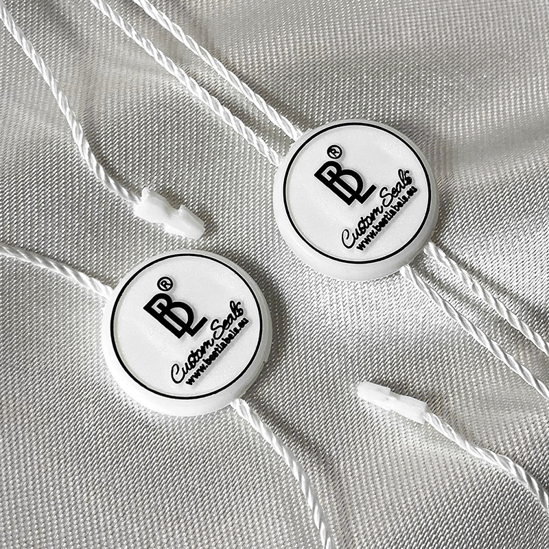 Plastic zegel ST-M87 met een elegant design en een ronde vorm. Kan worden gepersonaliseerd aan twee kanten met bijvoorbeeld een merknaam of een logo. Ideaal voor producten zoals kleding, tassen en schoenen. Dit type zegel is gemaakt van hoogwaardige materialen en met behulp van de meest geavanceerde technologieën in het veld.